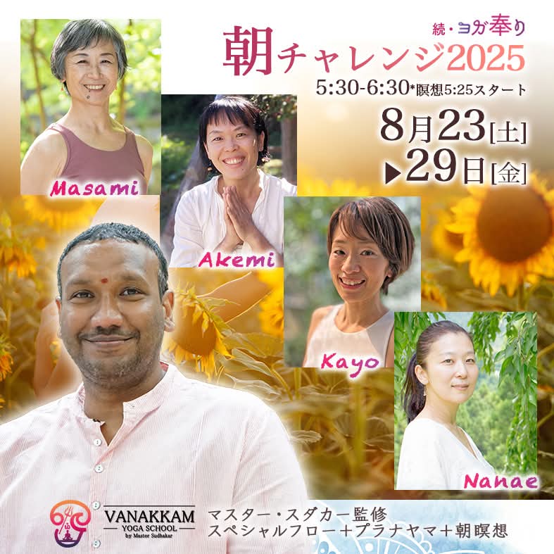 2025.08.17 【講師発表!】朝チャレンジ2025 8月 8月の朝チャレンジ講師が発表されました!! 詳細はこちら 神奈川・福井 Masami Otsubo埼玉 Akemi Suzuki千葉 Kayo Sakamaki徳島 Nanae Tomimoto(順不同)ワナカムヨガスクールで学び続ける全国の講師陣によるマスター・スダカー監修フローの効能をお受け取りください!